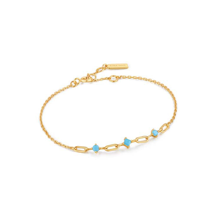 Ania Haie Gold Plated In To The Blue 16.5+2Cm Chain & Turquoise Bracelet